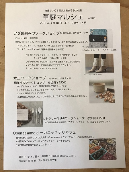 18日は草庭マルシェで、他にも中川木工芸の木工ワークショップ、
