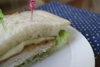 自家製パンにチキンカツをはさんでチキンカツサンド。