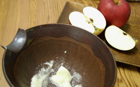 天然酵母パンにかぼちゃのスープをつけて食べるのがおいしい。