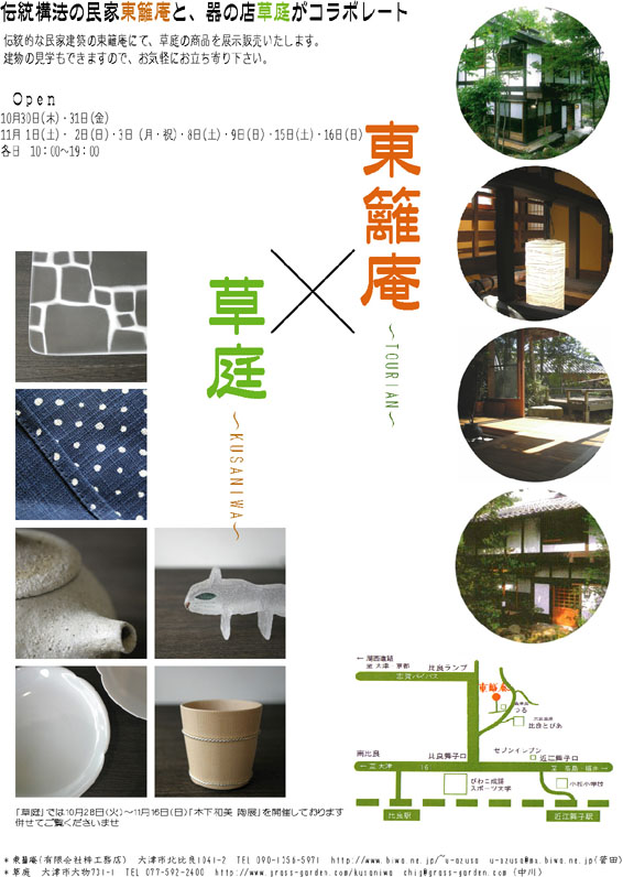 「草庭」は自然豊かな滋賀県湖西で器や雑貨を扱っているお店です。 作家さん、職人さんたちが作った、見た目も使い勝手もいいものたちをご紹介します。 《実店舗は2015年11月に引っ越しました。》 新住所:大津市八屋戸419 最寄駅:JR湖西線「蓬莱」徒歩7分 以前の場所からも近くですのでぜひお立ち寄りください。