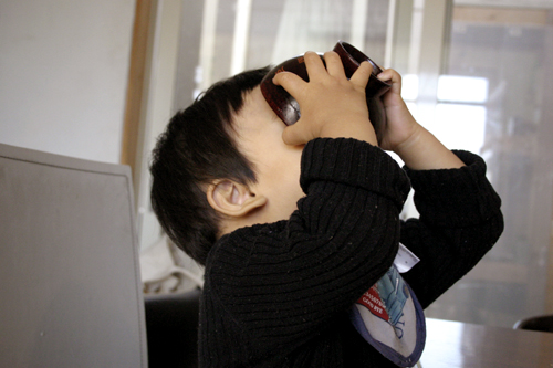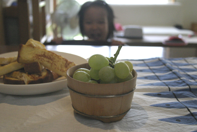 弟のお椀と自分のお椀を並べて、「は・る・な、あ・も・ん!」と読んでは、嬉しそう。