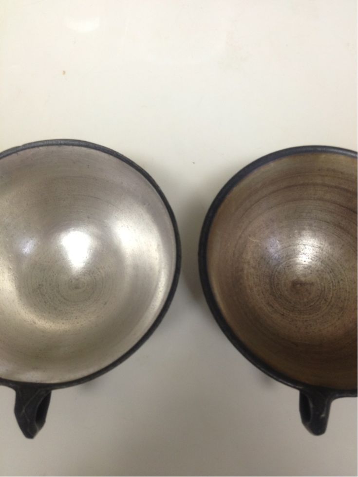 左が磨き終わったカップ。