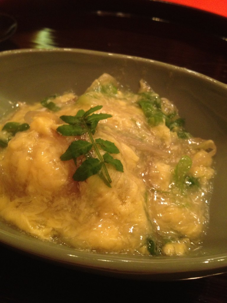 炒めた玉ねぎとトマトと湯葉のソースが。